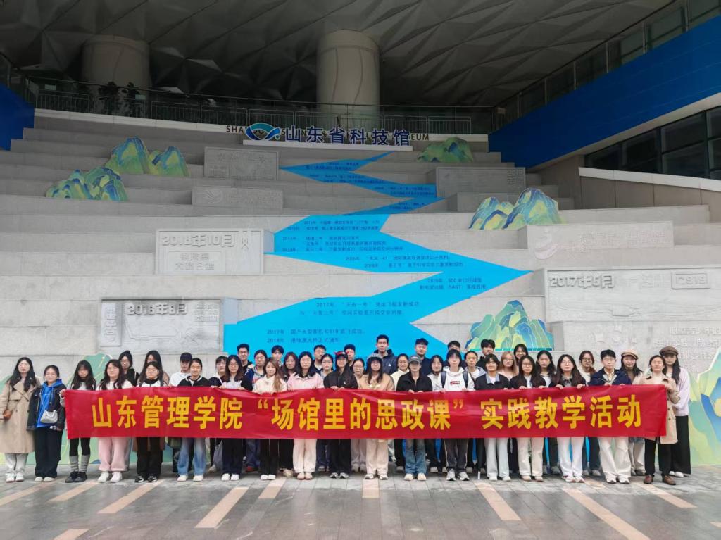 10月11日上午,习近平新时代中国特色社会主义思想教研室教师齐敏、郭晓雪组织工商学院、信息工程学院、艺术学院部分学生走进山东省科技馆开展“场馆里的思政课”实践教学活动。